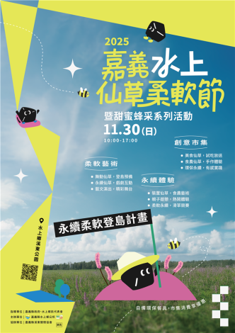 原訂於本所於114年11月15日(星期六)假水上鄉溪東公園舉辦之「2025年嘉義水上仙草柔軟節-永續登島行動」,因受鳳凰颱風來襲影響,考量民眾安全及現場設施布置作業,將延期至11月30日舉辦,活動內容將依原規劃執行。